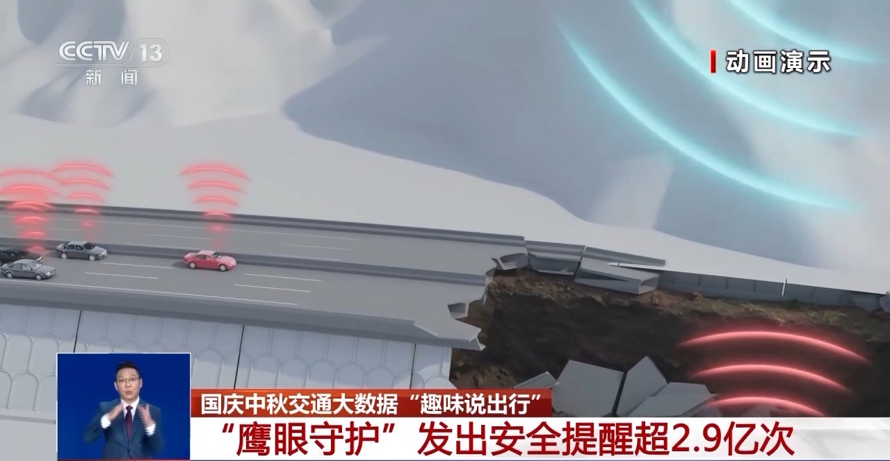 这个双节假期,中国安全生产科学研究院发布的“鹰眼守护”预警系统,能够实时分析驾车异常行为,及时向用户预警。国庆首日,这个系统累计发出安全提醒超2.9亿次,其中“前方有慢速车”“前方车辆急刹”“后方有快速车接近”是提及率最高的预警。