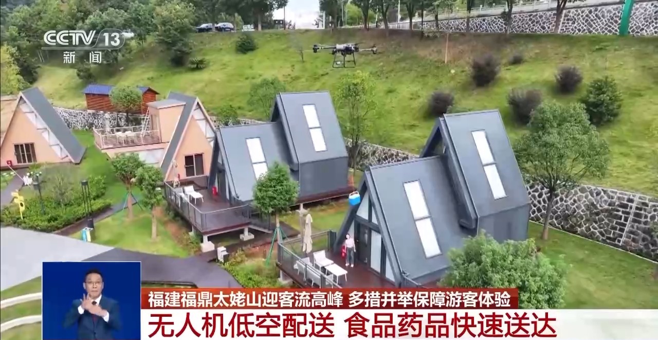 总台记者 彭雨佳:为了给游客带来更加便利的体验,今年,景区还配备了送餐无人机,游客们只需要扫码点餐,无人机就可以在十五到二十分钟内,把餐食送到山顶或指定观景平台。除了送餐,无人机还能随时配送应急商品、药品等。